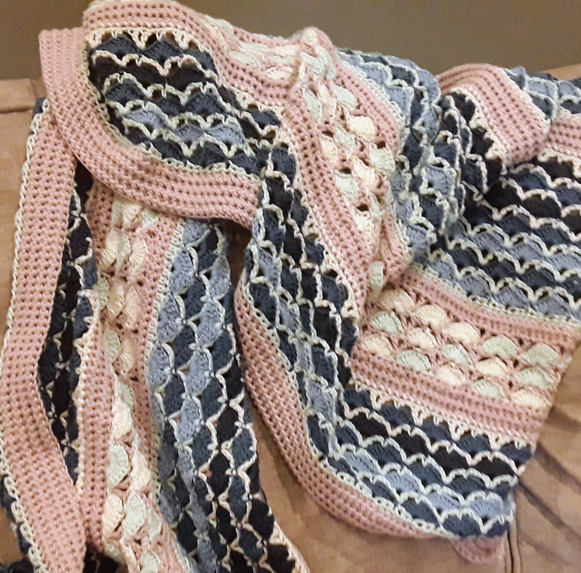 My solution to that would be to double or triple the bamboo blend – The drape of that yarn is your issue and the only way around it would be to make it thicker – Yes it would be a huge yarn eater but you would end up with a heavy floppy lovely afghan with the structure you want