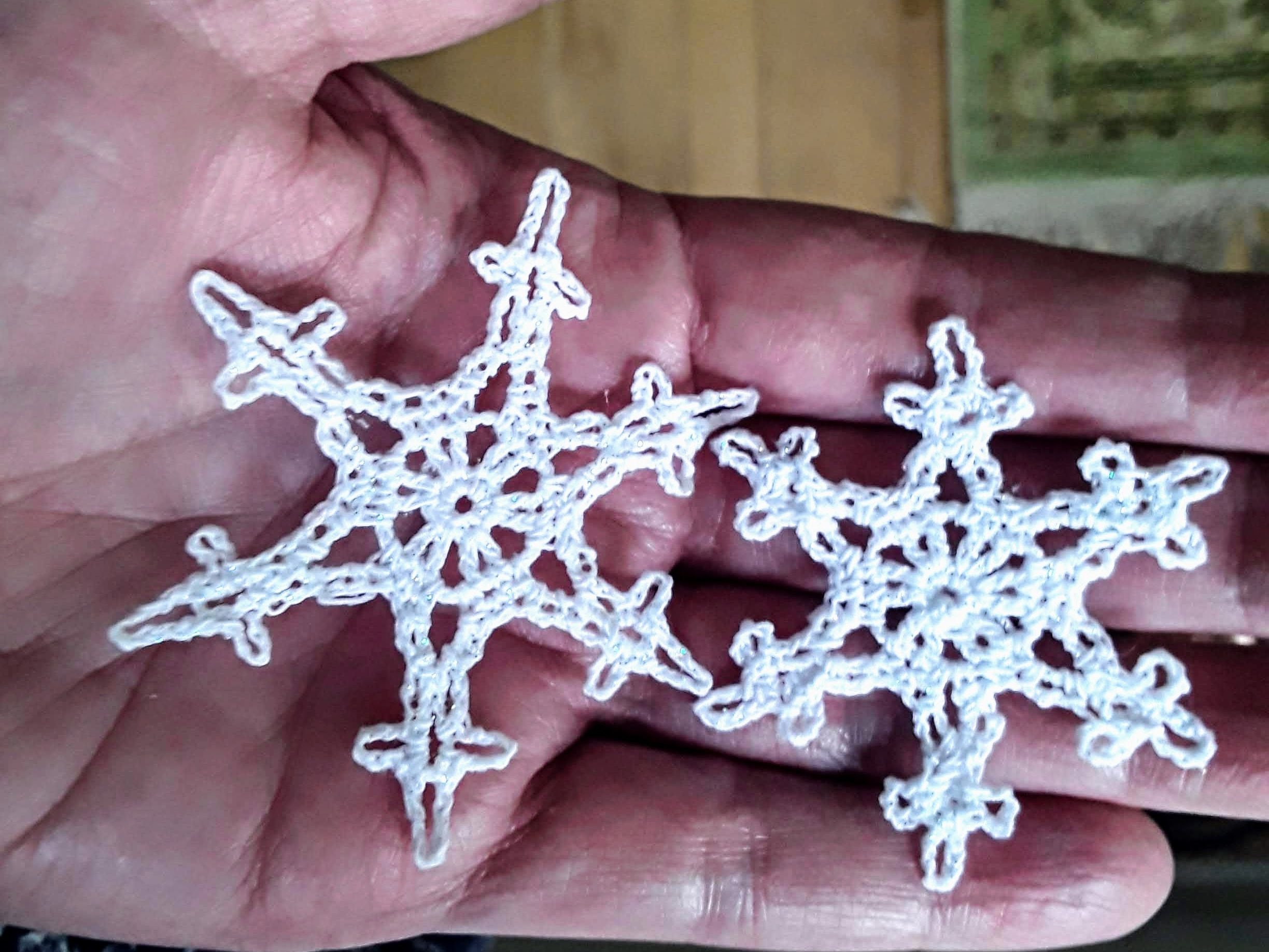 In the process of testing patterns for the new booklet, I’ve reworked the snowflake of free pattern fame to be a bit easier to make. Snowflake 1A is the free pattern. But I like both snowflakes, so I am including both in the booklet I’m publishing, along with other ornaments and more detailed instruction.