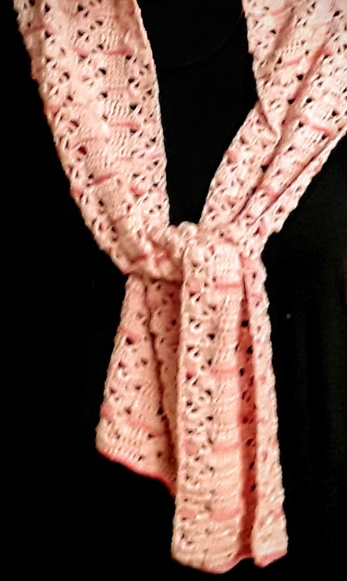 I wanted something just a bit different. A scarf in a soft color to stand out against the black clothes my daughter typically wears, with a highlight color to make it pop.