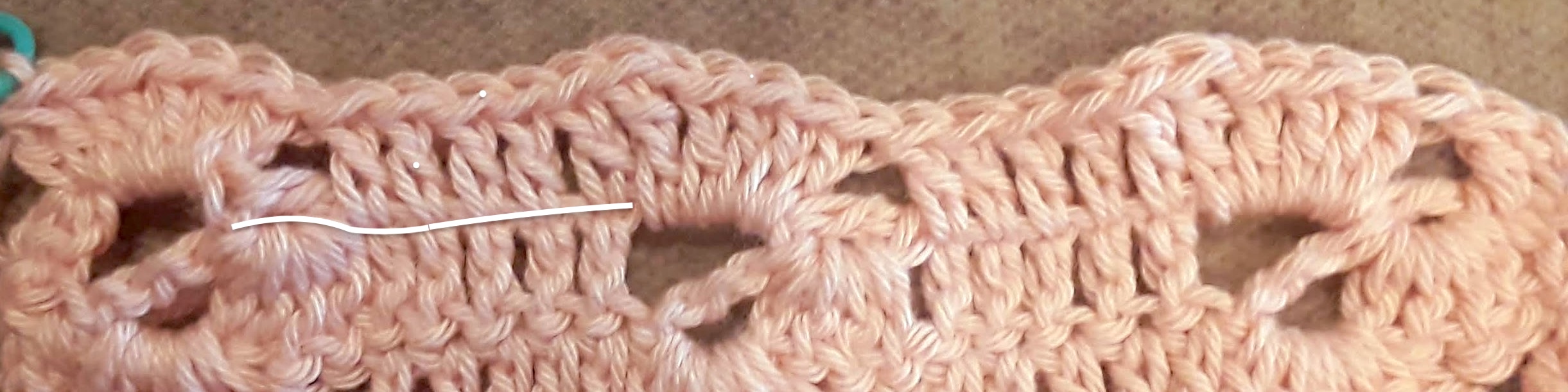 | 🟡 This would be a good time to make sure the last 4 rows are good, and weave in your accent color. Whip stitch around the back of the sl sts until you get to the first group of stitches in the chsp. Then work your needle through the next 5 stitches, catching a bit of the slip stitch as you go, work your thread back through those same stitches twice more. Make sure the accent yarn in the group of 5 stitches is hidden, then trim the yarn. Do the same on the other end. |