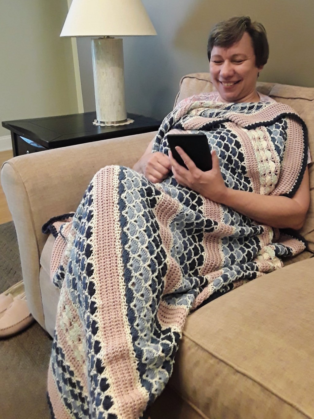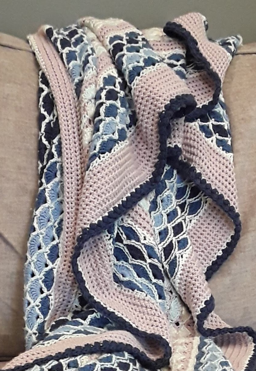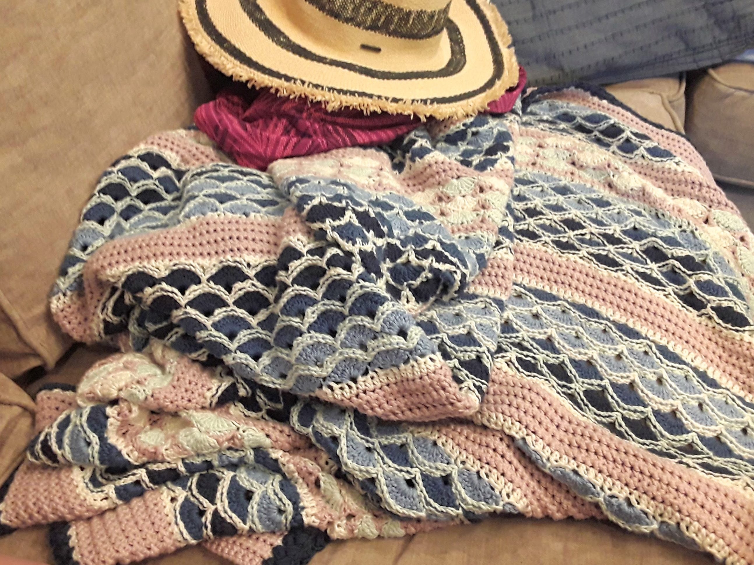 Here’s a link to the pattern for the stripes, if you haven’t seen it yet. That page also includes a table with the abbreviations which I will use here. I’ve written these border instructions for use with the Beach House afghan. But they really could be used for any blanket if you just pretend no one said what kind of stitches you attached the first round to.