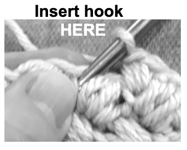 Insert hook directly into stitch indicated, yo, pull up a loop;