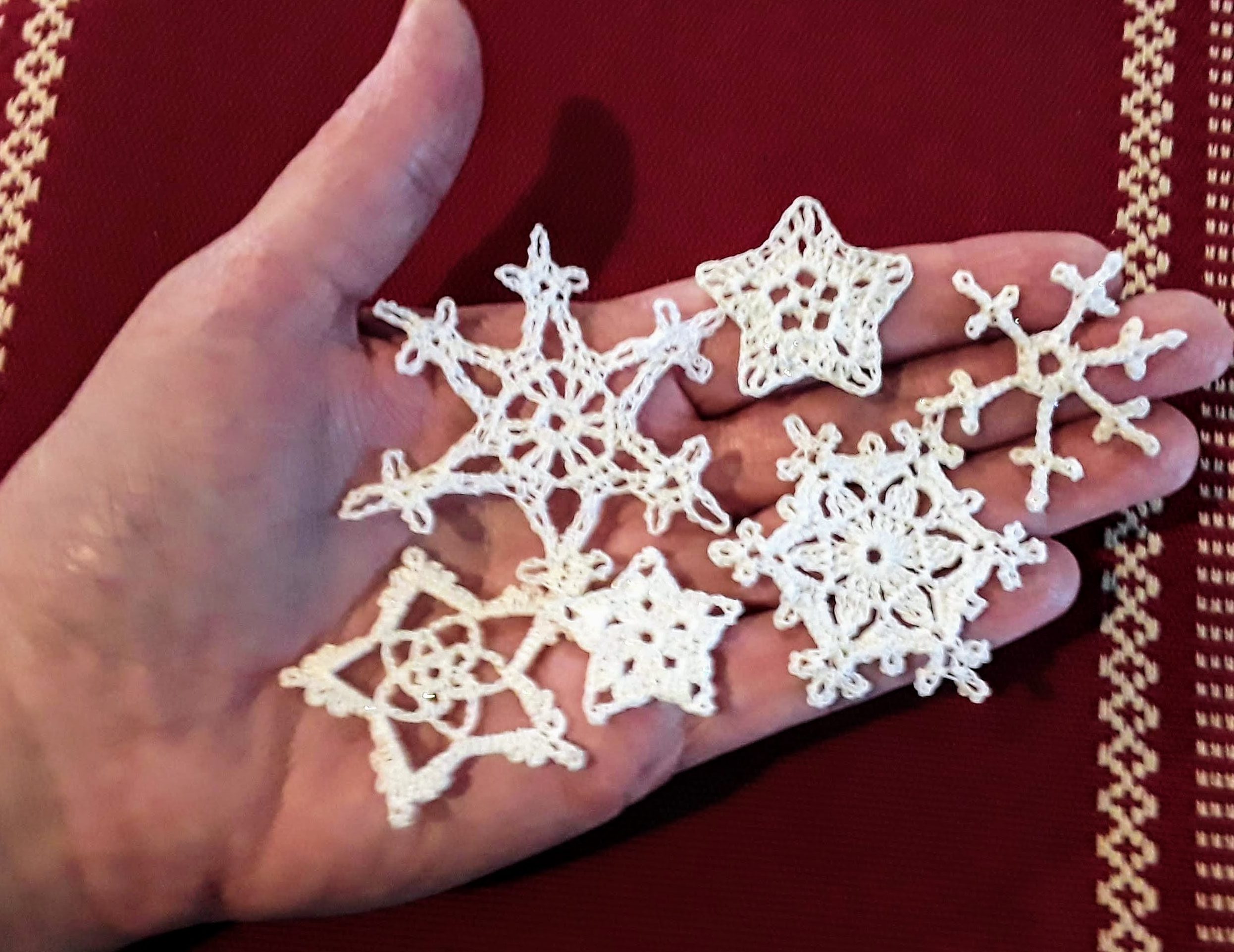 The solution? Guess what! (How did you know?) I designed my own patterns for tiny stars and snowflakes. By the time I did the first three stars, I could see that it was going well.